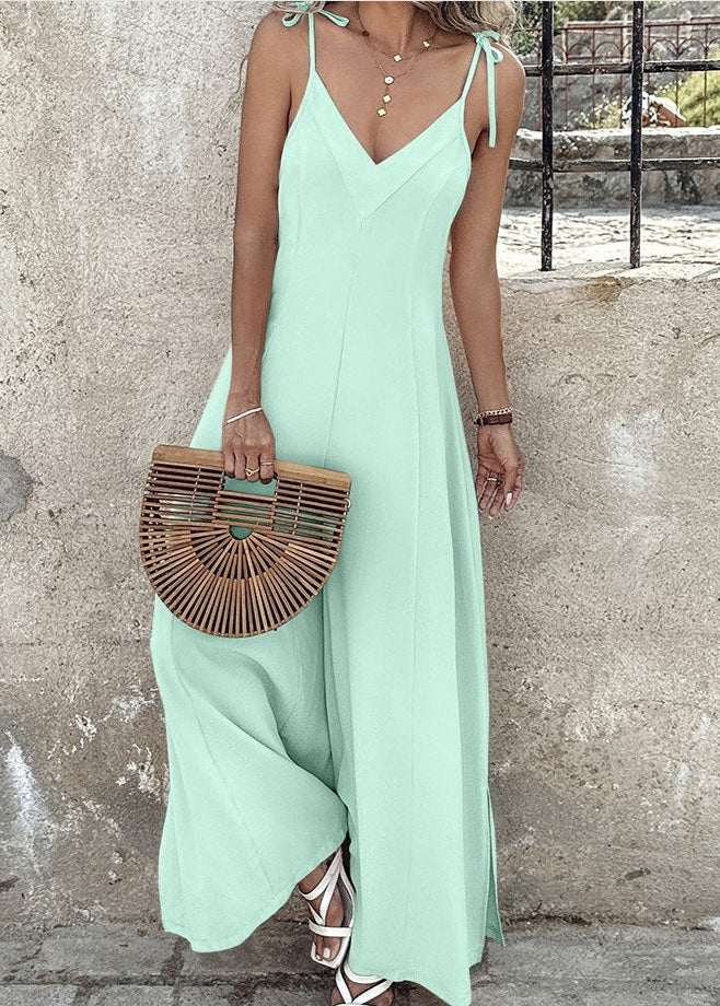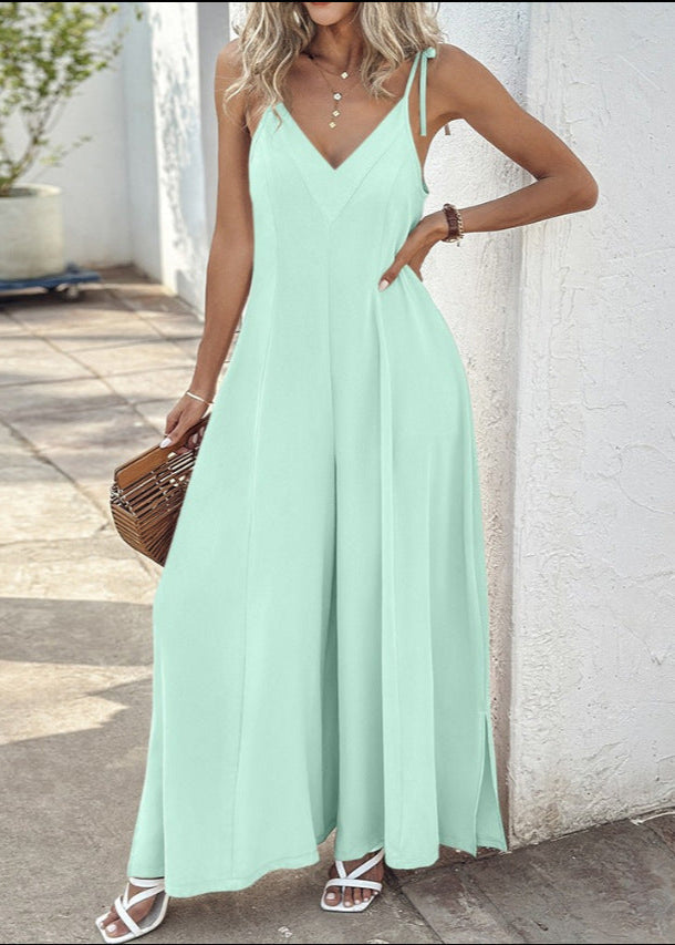 Adoptez un style léger et raffiné avec cette combinaison à bretelles au tombé fluide. Sa coupe large allonge la silhouette tandis que son tissu doux en polyester assure un confort optimal tout au long de la journée.