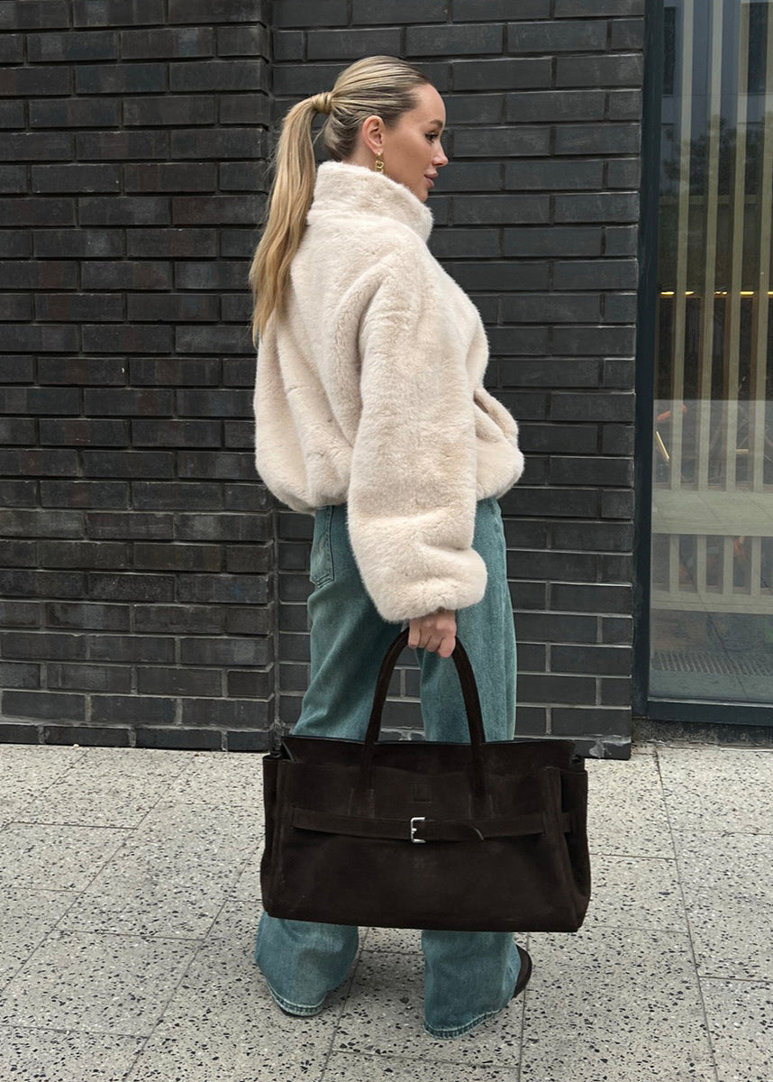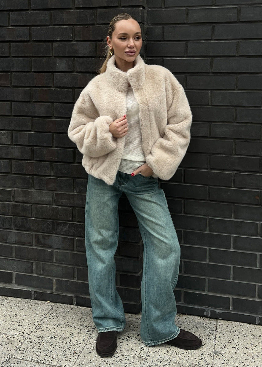 Ajoutez une touche de chaleur et de douceur à votre dressing avec cette veste en fausse fourrure beige. Sa texture ultra moelleuse apporte un confort incomparable tout en donnant une allure élégante et moderne.